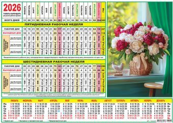 Календарь-ТАБЕЛЬ на 2026г., 297*210мм, Пионы 100 гр/м