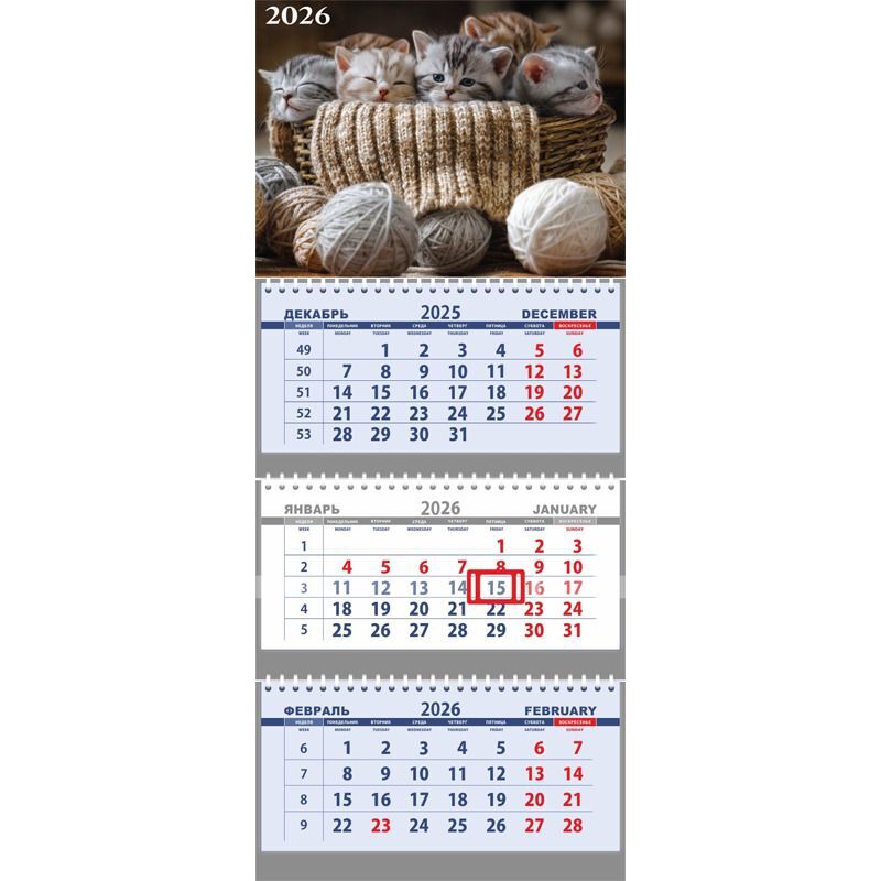 Календарь Трио 295*700мм на 2026г. Милые котята