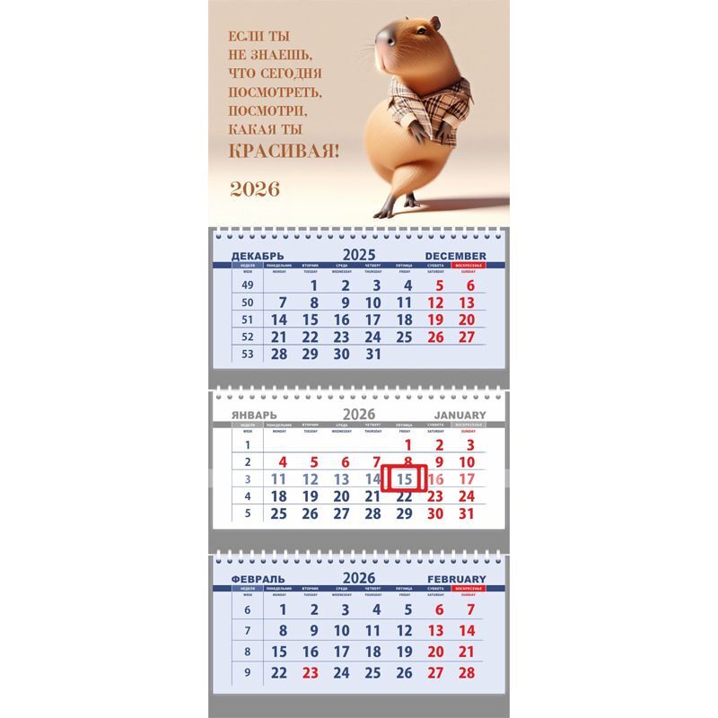 Календарь Трио 295*700мм на 2026г. Посмотри, какая ты красивая!"