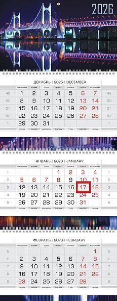 Календарь Трио 297*758мм на 2026г. Огни над водой