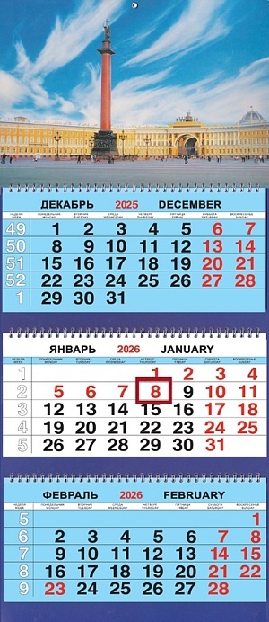 Календарь Трио 310*690мм на 2026г. СПб Дворцовая площадь день