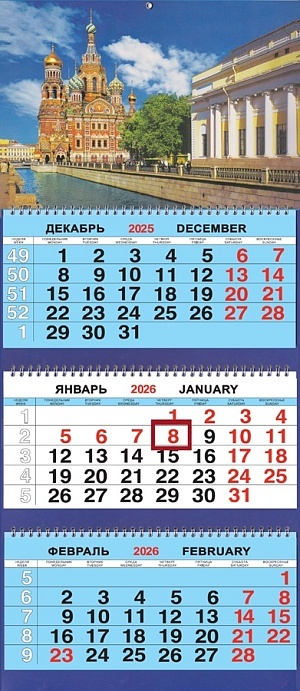 Календарь Трио 310*690мм на 2026г. СПб Спас Грибоедова день
