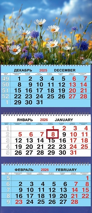 Календарь Трио 310*690мм на 2026г. Цветы. Полевые цветы
