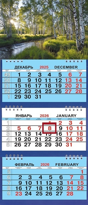 Календарь Трио Малый 200*470мм на 2026г. Берёзы у реки