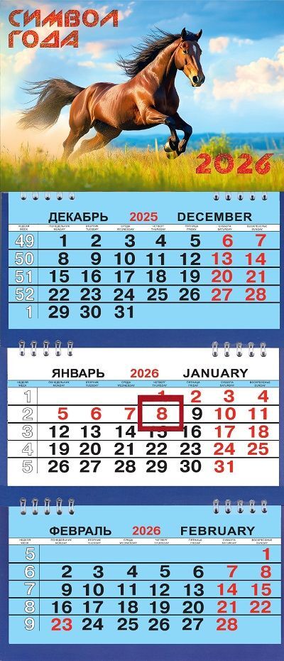 Календарь Трио Малый 200*470мм на 2026г. СГ Коричневая лошадь