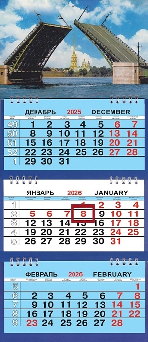 Календарь Трио Малый 200*470мм на 2026г. СПб Дворцовый мост день