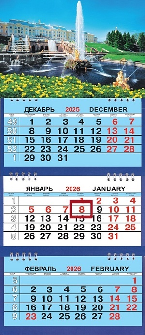 Календарь Трио Малый 200*470мм на 2026г. СПб Петергоф. Большой каскад