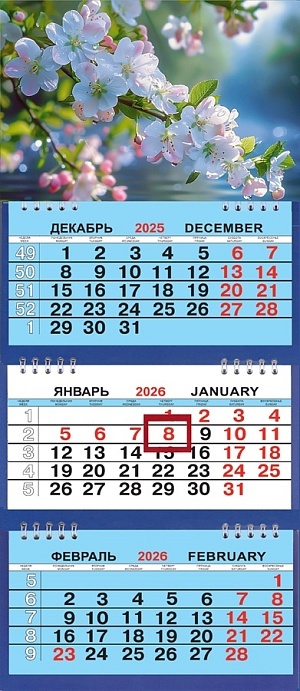 Календарь Трио Малый 200*470мм на 2026г. Цветущая яблоня