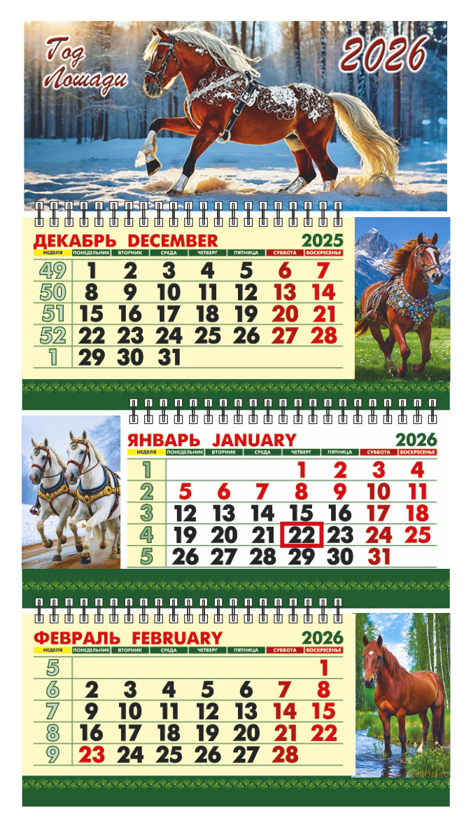 Календарь Трио Малый 246*450мм на 2026г. с курсором "Бурушка"