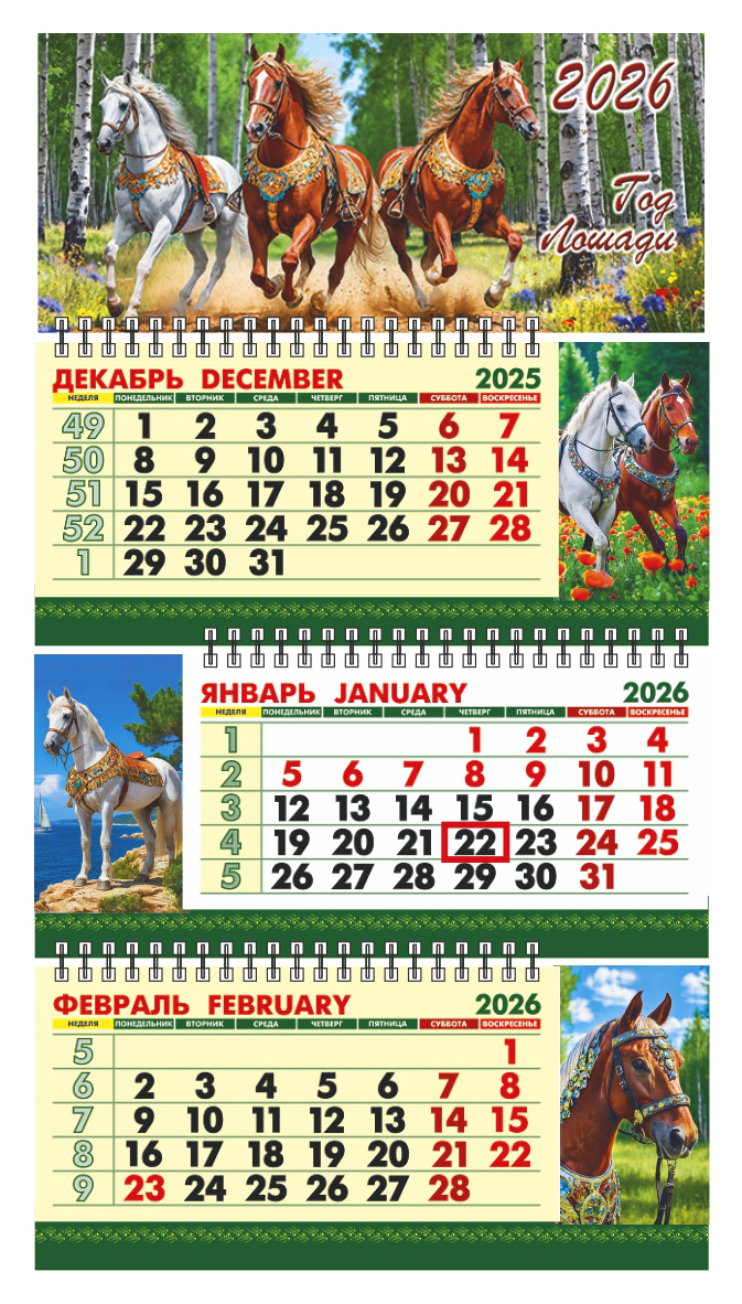 Календарь Трио Малый 246*450мм на 2026г. с курсором "Три друга"