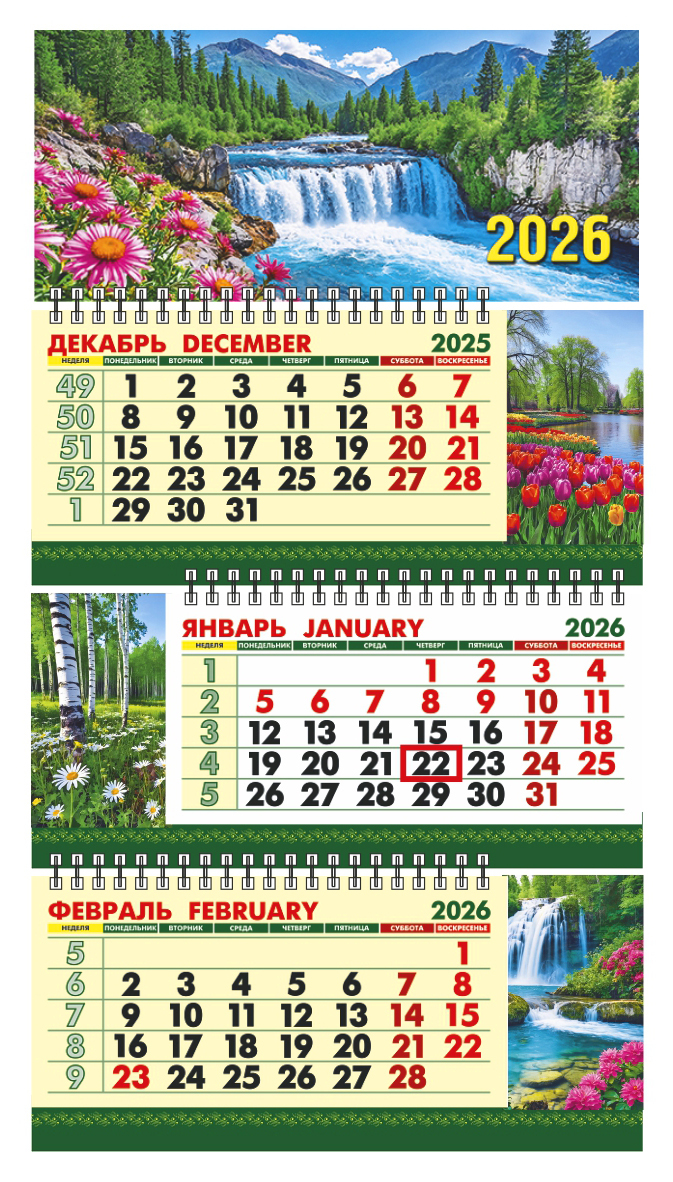 Календарь Трио Малый 246*450мм на 2026г. с курсором "Водопад"
