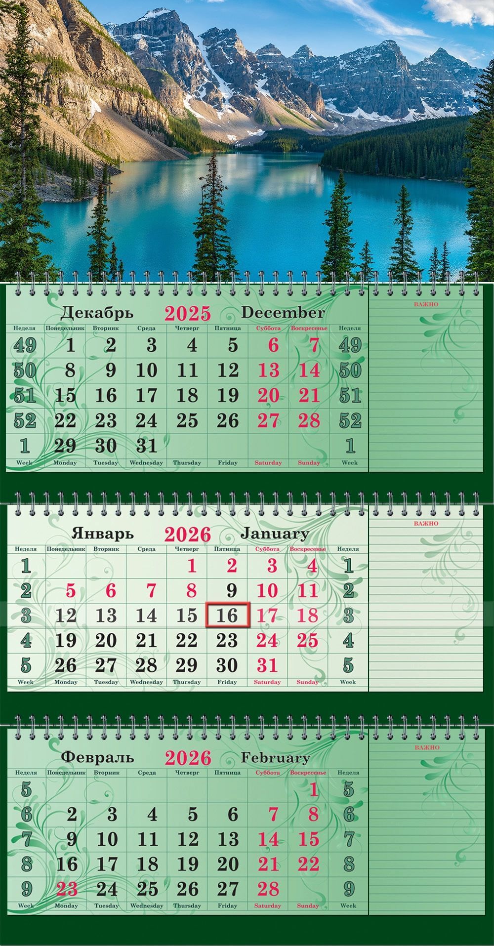 Календарь Трио с блоками для записей 440*835мм на 2026г. Горное озеро