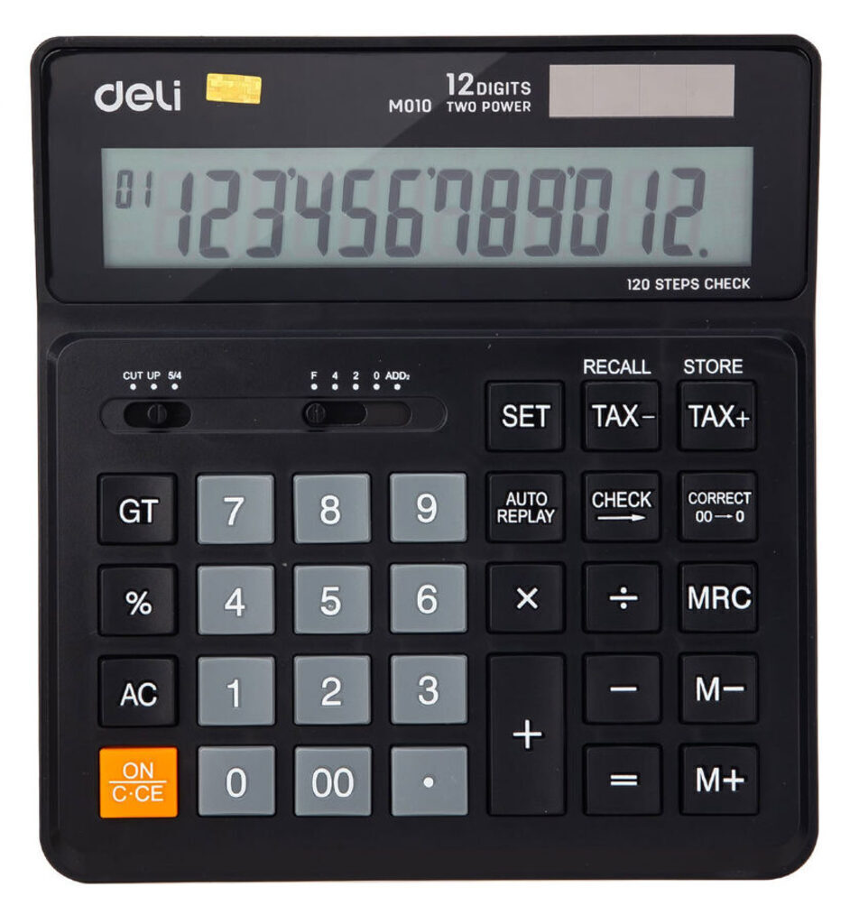 Калькулятор Deli EM01020 — это настольный 12-разрядный калькулятор, предназначенный для использования в офисе, бухгалтерии и других сферах, где требуются точные вычисления. Он оснащён большим и чётким LCD-дисплеем с фиксированным наклоном, что обеспечивает удобное чтение результатов. Корпус выполнен из прочного пластика с металлической панелью, что гарантирует долговечность устройства. размер 160.7*150.5*33.5mm