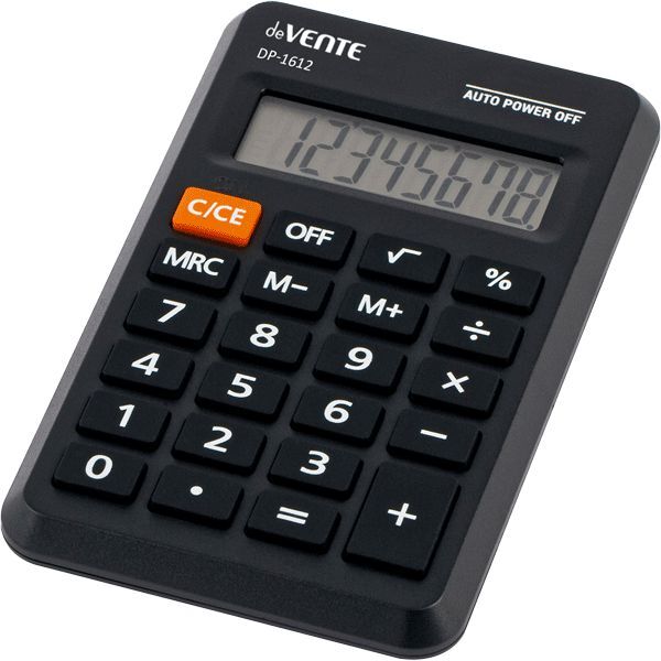 Калькулятор карманный "deVENTE" DP-1612, 69x114x14 мм, 12 разрядный, автоматическое вычисление квадратного корня, процентов, работа с памятью, черный, в картонной коробке