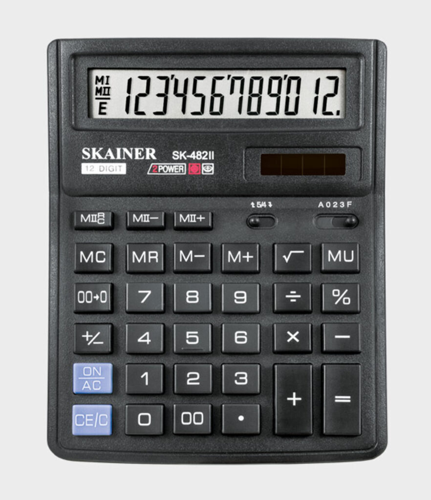 Калькулятор 12 разр. Skainer настольный, двойное питание, черный SK-482II (SDC-382)