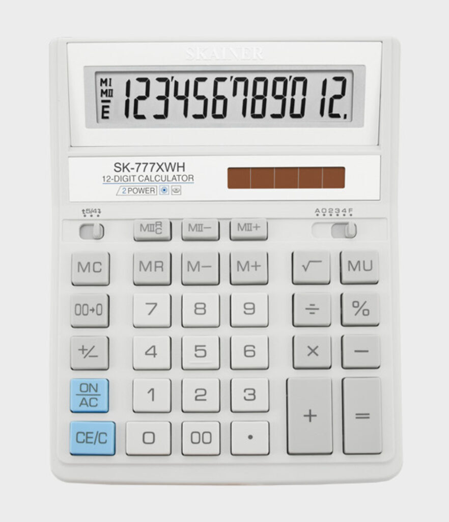 SK-777XWH боль. наст. кальк. (пл., 12 разрд., 2 пит., 2 пам., бел. 157 x 200 x 32 мм)(SDC-888XWH)
