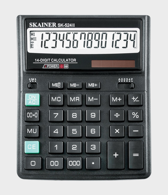 Калькулятор бухгалтерский, настольный, 14-ти разрядный "SKAINER" SK-524II.