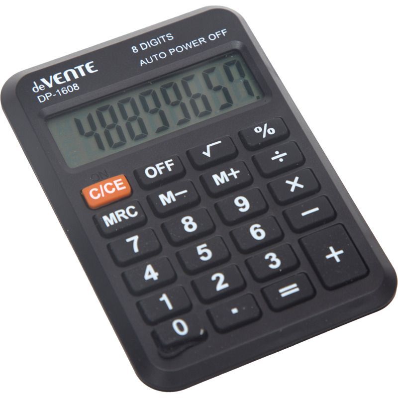 Калькулятор карманный "deVENTE" DP-1608, 58x88x11 мм, 8 разрядный, автоматическое вычисление квадратного корня, процентов, работа с памятью, черный, в картонной коробке