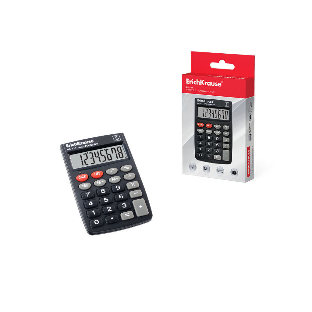 Карманный калькулятор в пластиковом корпусе с 8-разрядным дисплеем. Размер 58*88*5 мм. Позволяет совершать все основные математические действия, рассчитывать проценты, извлекать квадратный корень, запоминать промежуточный результат. Источник питания алкалиновая батарея. Для экономии энергии предусмотрена функция автоматического выключения. В комплекте обложка-книжка из PVC материала для защиты от повреждений, загрязнений и случайного включения.
