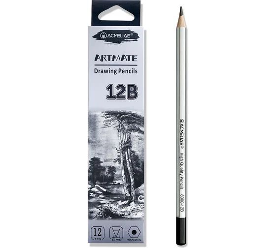 Набор художественных чернографитных карандашей, твердость 12В, грифель 4 мм. Высокое качество рисования, эскизов, набросков, скетчей, графики, черчения. Специальная проклейка грифеля (корпус с грифелем составляет одно целое) предотвращает его поломки при падении и затачивании. Однородный грифель графитового карандаша не царапает бумагу, оставляет четкие яркие линии, не крошится, затачивается до нужной остроты. Шестигранный корпус легкий, удобно лежит в руке, пальцы не скользят – можно работать без усталости. Корпус из высококачественной древесины ровно и аккуратно затачивается стандартными точилками, не меняет упругость, не трескается. Длина корпуса 176мм. Матовая бархатистая лакированная поверхность, серебристый корпус, запаянный верх. Карандаш простой чернографитовый мягкости, жесткости 12B заточенный. 12 штук в наборе. Профессиональные графитные карандаши подойдут для студентов вузов, инженеров, художников, архитекторов, чертежников, дизайнеров, художественных студий, школ, колледжей, школьников.