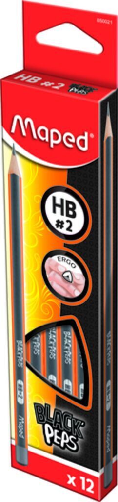 Чернографитный заточенный карандаш Maped "Black Pep's" - идеальный инструмент для письма, рисования и черчения.Трехгранный корпус выполнен из дерева. Высококачественный ударопрочный грифель не крошится и не ломается при заточке.