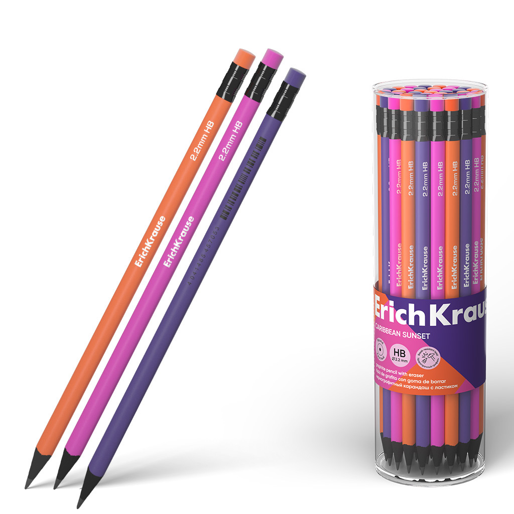 Круглый чернографитный карандаш из отборной тонированной древесины с ластиком, твердость НВ. Специальная пропитка древесины и сплошная проклейка грифеля обеспечивает высокую ударопрочность. Мягкая древесина и идеальная центровка грифеля гарантируют легкую заточку с экономным расходом карандаша. Грифель диаметром 2,2 мм не царапает бумагу и не крошится. Ластик карандаша средней жесткости изготовлен из экологически чистого и гипоаллергенного материала термопластичной резины (TPR). Не содержит ПВХ. Длина 188 мм.