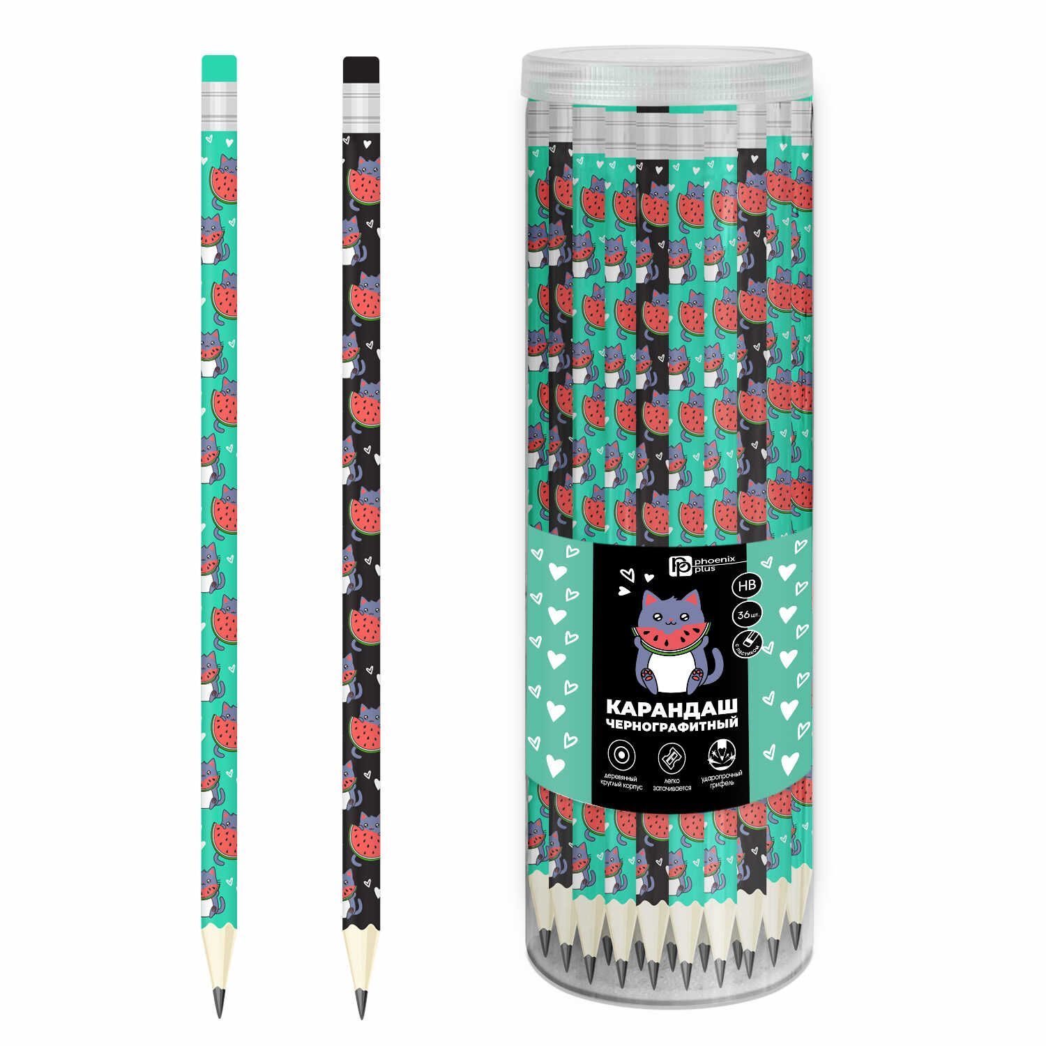 Карандаш ч/гр "Котенок с арбузом" с ластиком НВ