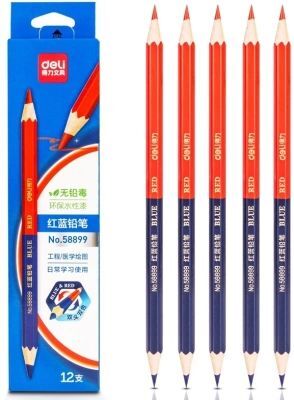 Карандаш двухсторонний: синий и красный Корпус: шестигранный Специальный чернильный копировальный карандаш, изменение цвета черты в процессе намокания Используется на бумажных поверхностях, дереве, металле, пластике.