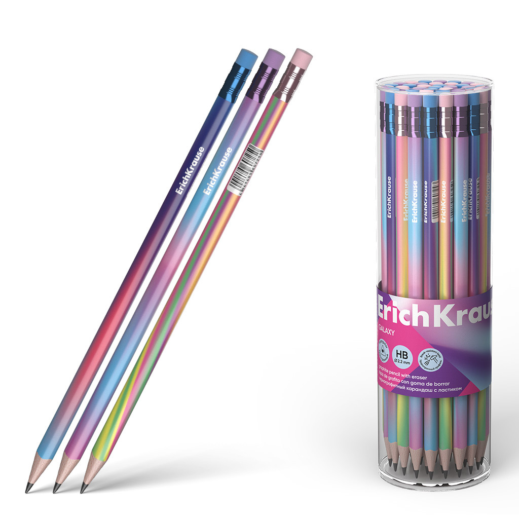 Эргономичный трехгранный чернографитный карандаш из отборной древесины с ластиком, твердость НВ. Три дизайна корпуса карандаша, цветные ластики. Специальная пропитка древесины и сплошная проклейка грифеля обеспечивает высокую ударопрочность. Мягкая древесина и идеальная центровка грифеля гарантируют легкую заточку с экономным расходом карандаша. Грифель диаметром 2.2 мм не царапает бумагу и не крошится. Ластик карандаша средней жесткости изготовлен из экологически чистого и гипоаллергенного материала термопластичной резины (TPR). Не содержит ПВХ. Длина 188 мм.