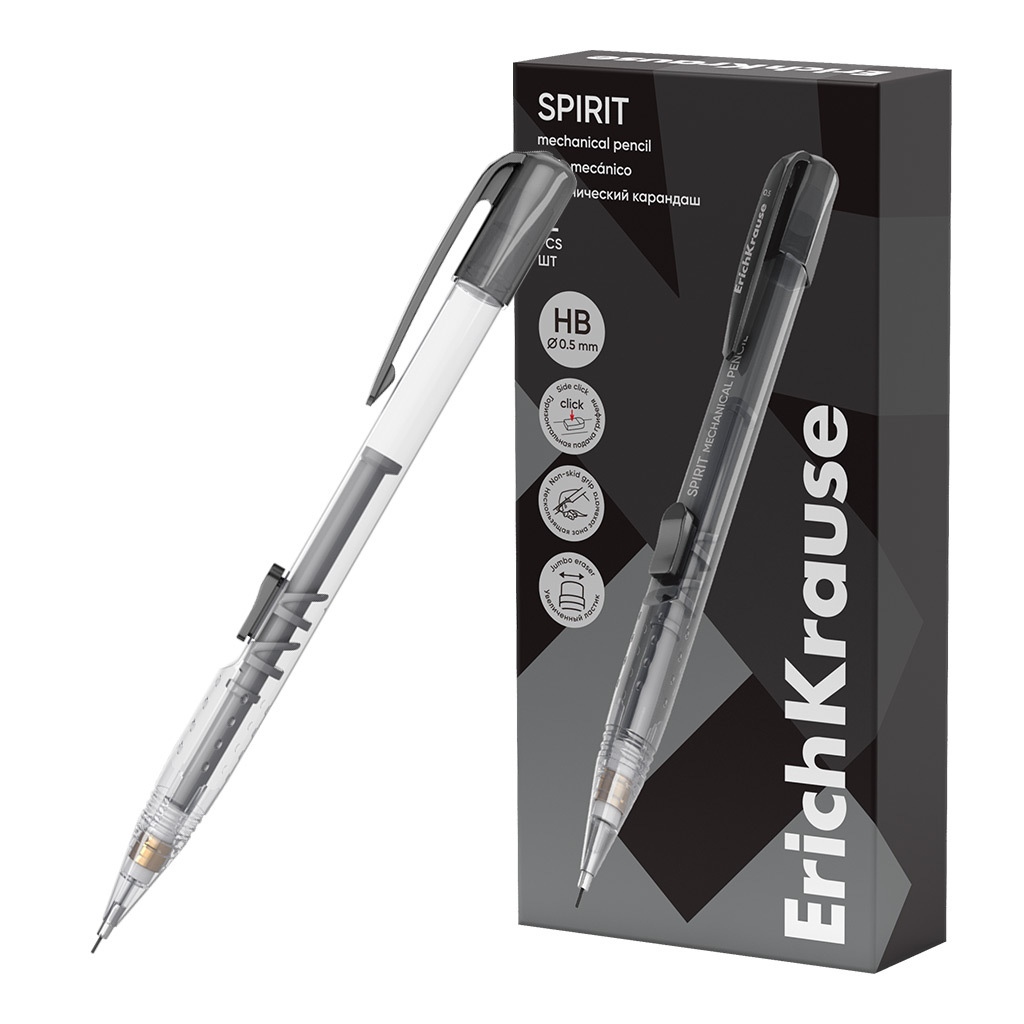 Механический карандаш с горизонтальной подачей грифеля. Нескользящая зона захвата. Оснащен ластиком, увеличенного размера, закрывающимся колпачком и удобным клипом. Твердость HB. Диаметр грифеля - 0.5 мм.