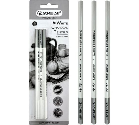Набор высококачественных художественных угольных карандашей 3 штуки. Белый уголь для рисования сочетает лучшие характеристики угля и простых карандашей для творчества. Универсальный, обладают огромными возможностями в передаче света и тени. Удобен для проработки контуров и мелких деталей, скетчинга, эскизов, набросков, графики, портретов, живописи. Используются для смягчения и осветления основного цвета, создания монохромных рисунков, придания объема предметам за счет бликов, создания плавных цветовых переходов с помощью растушевки цвета. Помогает прорисовать светлые места, уменьшить насыщенность базовых цветов. Отлично смотрятся на темном фоне. Легко удаляется с бумаги ластиком. Подходят начинающим и профессиональным художникам, детям, школьникам, любителям рисования. Для студий и художественных школ. Корпус из натуральной древесины. Грифель - ударопрочный, с натуральным составом, мягко рисует по бумаге. Затачивается канцелярским ножом. Не пачкает руки. Корпус: круглый. Упаковка: блистер.