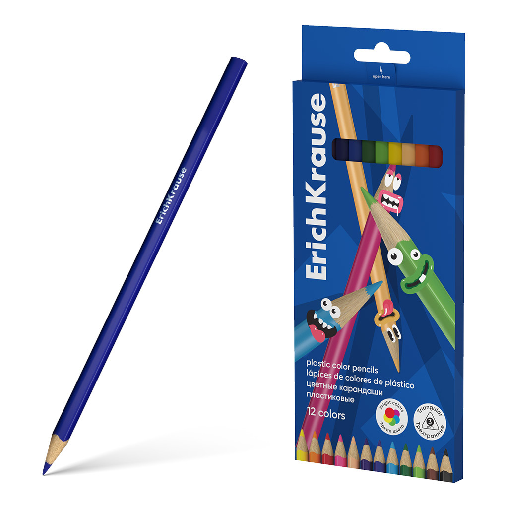 Пластиковые цветные карандаши ErichKrause представлены широкой палитрой оттенков, которые позволяют создавать яркие реалистичные рисунки. Регулируя силу нажима, можно контролировать насыщенность оттенков и плавность перехода цветов. Благодаря трехгранной форме, карандаши удобно лежат в руке и не скатываются с поверхности. Специальная технология изготовления карандаша методом экструзии надежно фиксирует грифель к корпусу, что обеспечивает высокую ударопрочность. Идеальная центровка грифеля и пластичность материала карандаша гарантируют легкую заточку с экономным расходом карандаша. Грифель диаметром 3 мм не царапает бумагу, не крошится при рисовании и не ломается даже при сильном нажатии.