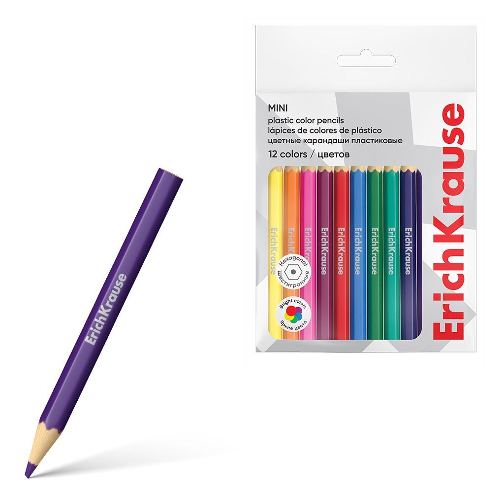Пластиковые цветные карандаши в мини-формате. Благодаря шестигранной форме они удобно лежат в руке и не скатываются с поверхностей. Карандаши удобно брать с собой в путешествие.