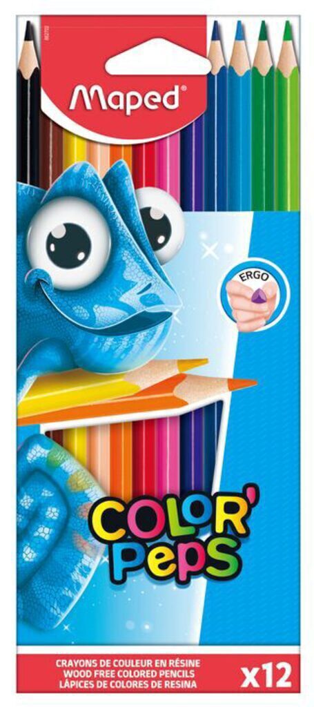 PULSE Цветные карандаши, пластиковые, 12 цветов в картонной коробке с подвесом, трехгранные, заточенные.