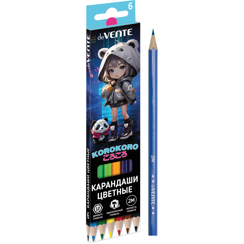 Карандаши цветные "deVENTE. Korokoro" 06 цветов, 2М, диаметр грифеля 2,8 мм, шестигранные, в картонной коробке
