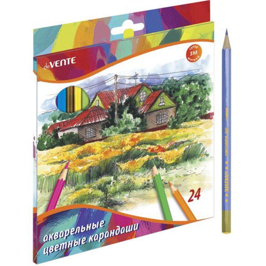 Карандаши цветные акварельные "deVENTE" 24 цвета, 3М, диаметр грифеля 3 мм, шестигранные, в картонной коробке