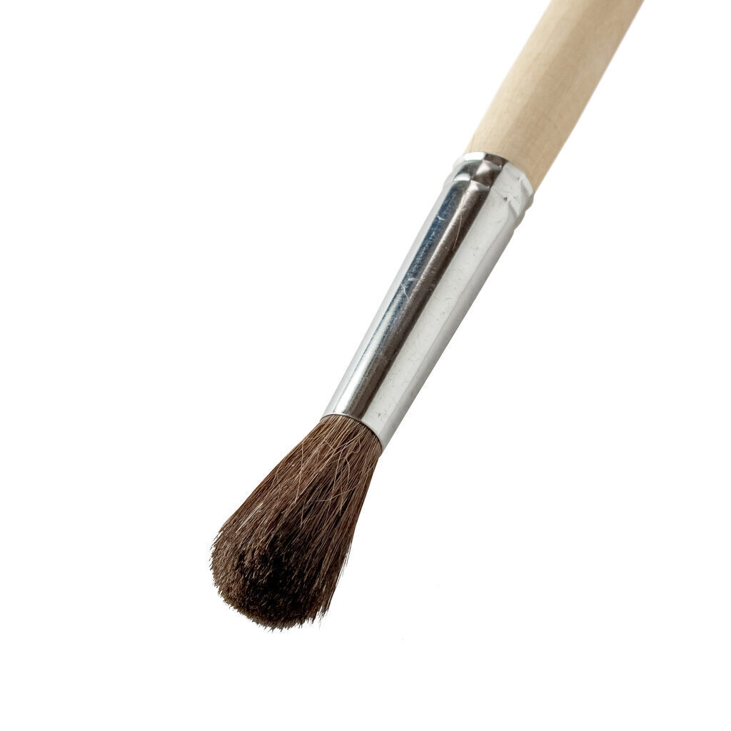 Кисти из волос пони отлично впитывают краски, но при этом трудно с ней расстаются. Волос в таких кистях собирается в форму конуса, хорошо держит форму, но не отличается достаточной упругостью. Этот тип кистей относят к оформительской группе, предназначены они для работы с водорастворимой краской: акварелью, гуашью или темперой.