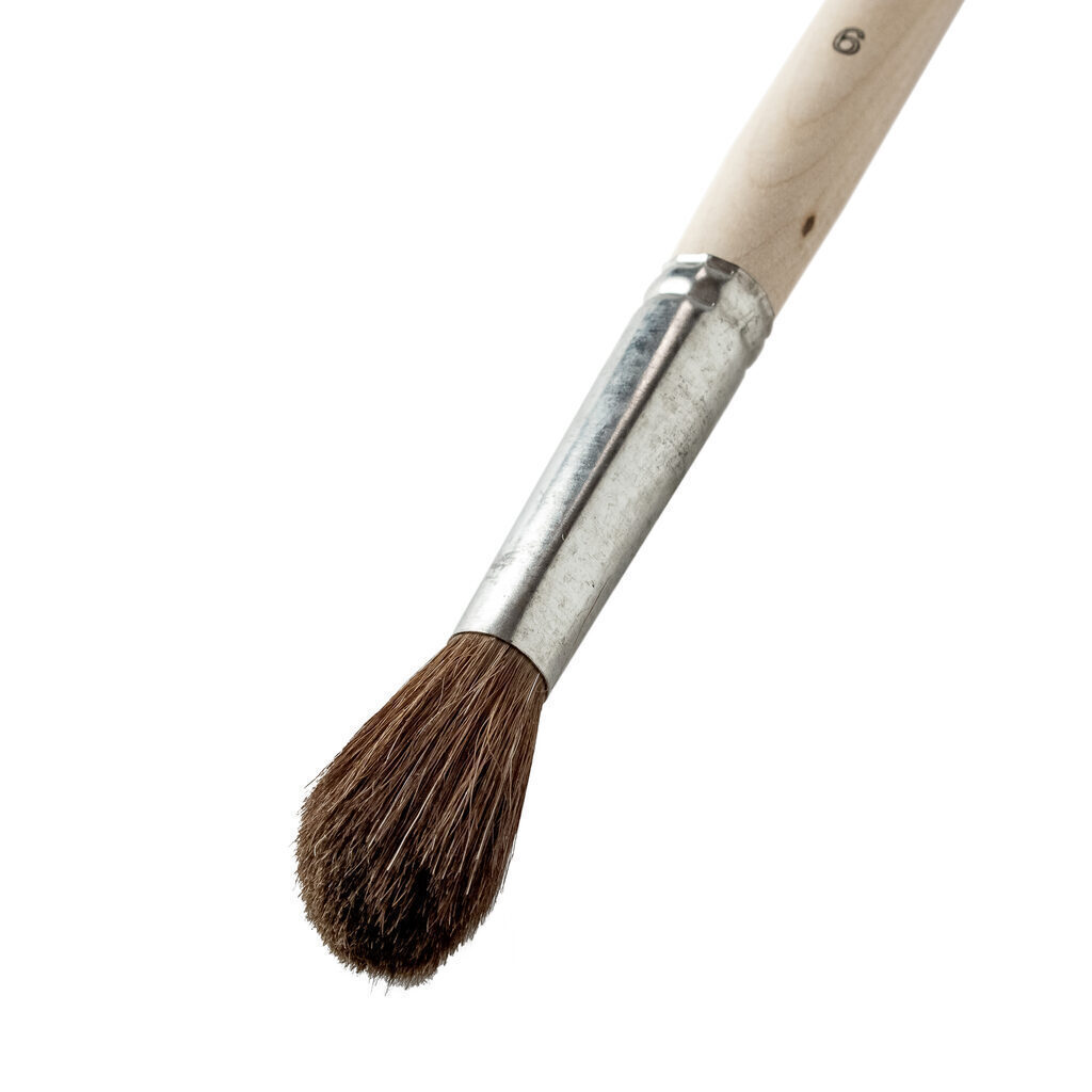 Кисти из волос пони отлично впитывают краски, но при этом трудно с ней расстаются. Волос в таких кистях собирается в форму конуса, хорошо держит форму, но не отличается достаточной упругостью. Этот тип кистей относят к оформительской группе, предназначены они для работы с водорастворимой краской: акварелью, гуашью или темперой.