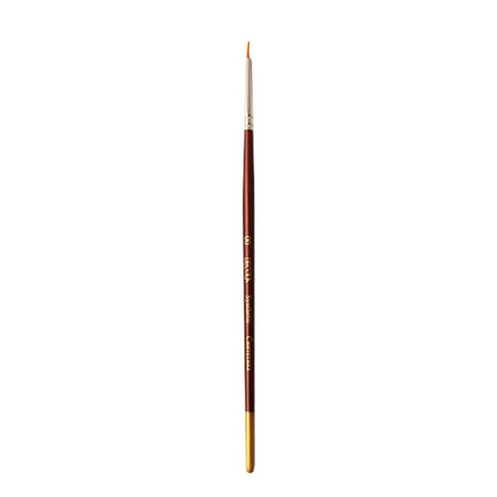 Кисть художественная из синтетического волокна. В последнее время при производстве кистей применяют синтетическое волокно. Его упругость и прочность позволяют конкурировать с натуральным волосом, имея при этом умеренную цену. Кисти предназначены для работы с акварелью, гуашью, маслом, темперой и акрилом. Данная кисть имеет универсальную форму. Такой кистью наносят линии с неизменной толщиной, либо линии, варьирующиеся по толщине. Это прекрасная кисть подходит для проработки деталей, создания фактуры.