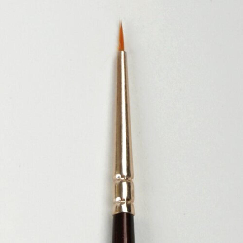 Кисть художественная из синтетического волокна. В последнее время при производстве кистей применяют синтетическое волокно. Его упругость и прочность позволяют конкурировать с натуральным волосом, имея при этом умеренную цену. Кисти предназначены для работы с акварелью, гуашью, маслом, темперой и акрилом. Данная кисть имеет универсальную форму. Такой кистью наносят линии с неизменной толщиной, либо линии, варьирующиеся по толщине. Это прекрасная кисть подходит для проработки деталей, создания фактуры.