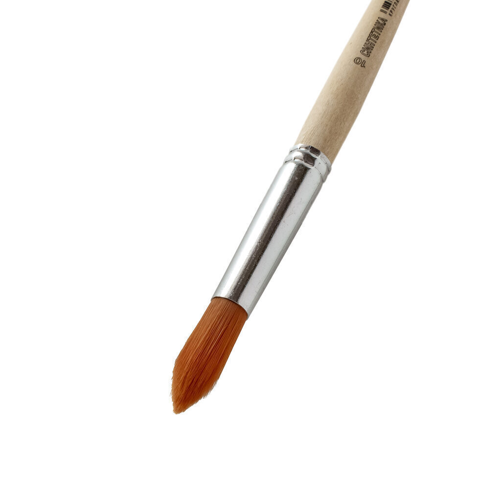 Кисть синтетика № 10 Круглая Кисть сохраняет свою упругость при намокании. Отличается долгим сроком службы. Подходит для всех типов красок: акварель, гуашь, масло, акрил.