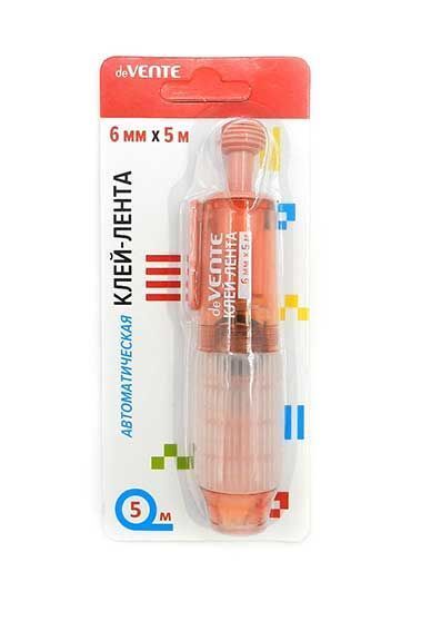 Клеящая лента двухсторонняя "deVENTE" 6 ммx06 м, в диспенсере, красный полупрозрачный корпус, выдвижной поворотный аппликатор, в картонном блистере