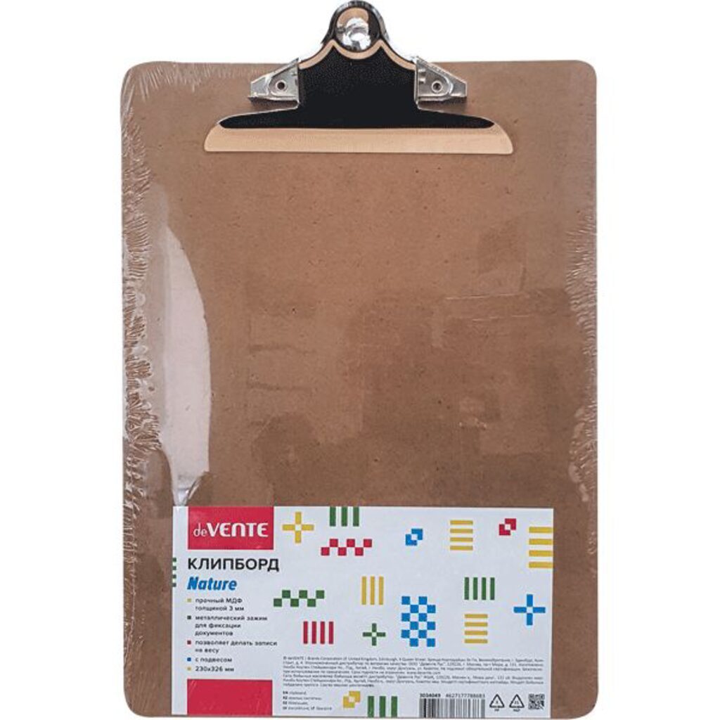 Клипборд "deVENTE. Nature" A4 (230x326 мм) МДФ толщиной 3 мм, без покрытия, усиленный прижим бабочка шириной 14,5 см, в пластиковом пакете, натуральный коричневый