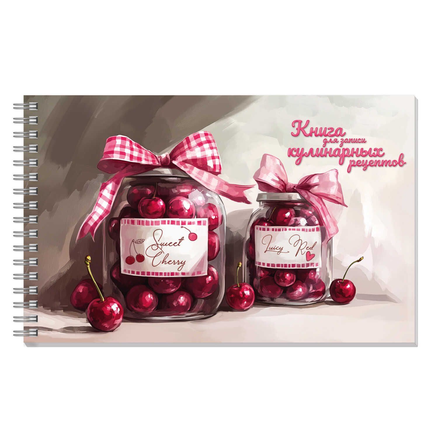 Книга для кулинарных рецептов 220*136мм 96л., 7БЦ гребень "Вишневое варенье" мат.лам.