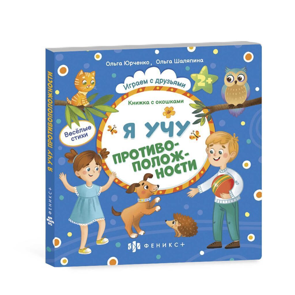 Весёлые герои познакомят малыша со словами, противоположными по значению. Под большими окошками, которые удобно открывать и закрывать, прячутся интересные задания. С помощью забавных стихотворений ребёнок закрепит понятия «большой – маленький», «вверх – вниз», «далеко – близко», «громко – тихо и другие.