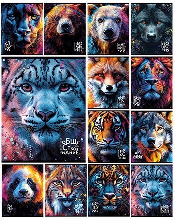 Комплект предметных тетрадей "Дикие Животные" 12 шт в упаковке, 48л., белизна 100%