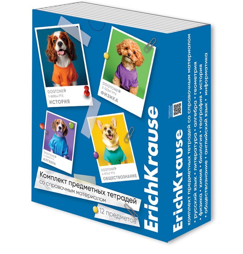 Комплект предметных тетрадей "DogTone" 12 шт в упаковке, 48л., кл./лин., справ. мат.