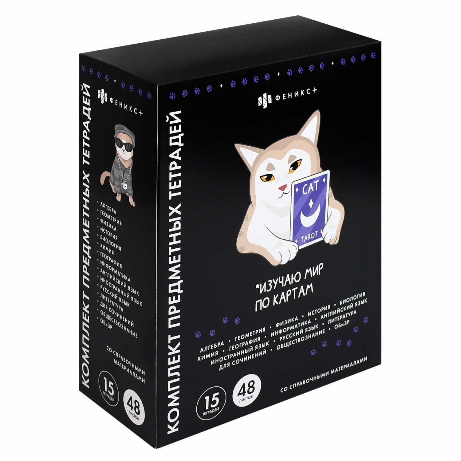 Комплект предметных тетрадей "Коты мемы" 15 шт в упаковке, 48л., выб.твин УФ-лак.