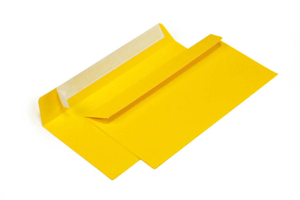 Конверт Желтый С65 114х229 мм с защитной лентой, плотность 120 г/м, материал офсет