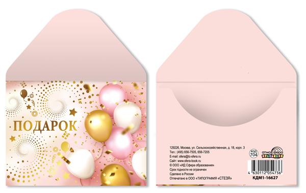 Конверт для подарочного сертификата 10*7см "Подарок"